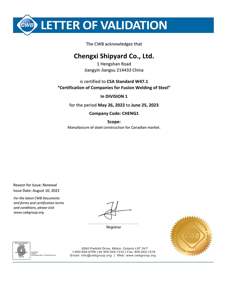 公司非船以鋼結構制造等業務為核心,主要從事國內外風力發電塔塔架制作,產品遠銷歐洲、美洲、澳大利亞及非洲等地,相繼取得歐洲EN1090-1、EN1090-2認證、日本大臣認證及加拿大CWB認證,并...詳情 >>